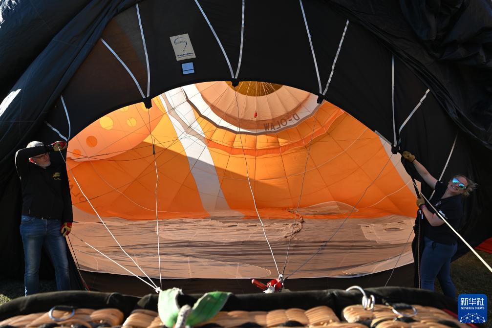 9月5日,人們在德國瓦爾施泰因給熱氣球充氣。
