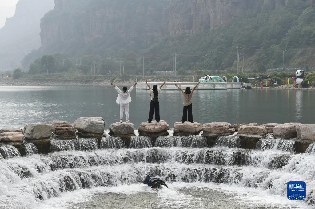 9月5日,游人在林州市石板巖鎮游覽。