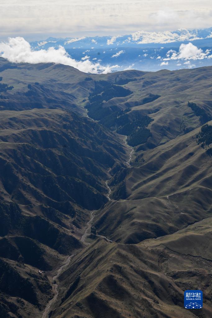 這是從執行航空巡護任務(wù)的直升機上俯瞰伊犁河谷一處林區(9月5日攝)。