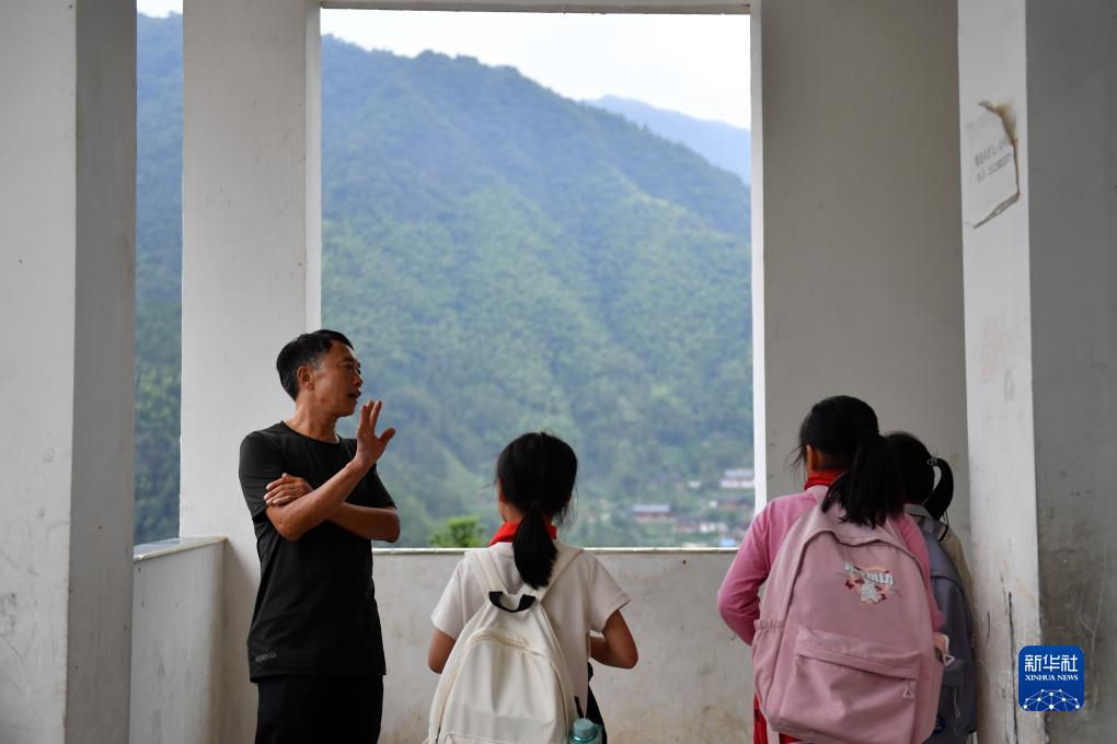 9月4日,報木小學(xué)的校長(cháng)段同山和放學(xué)的學(xué)生打招呼,提醒他們路上注意安全。