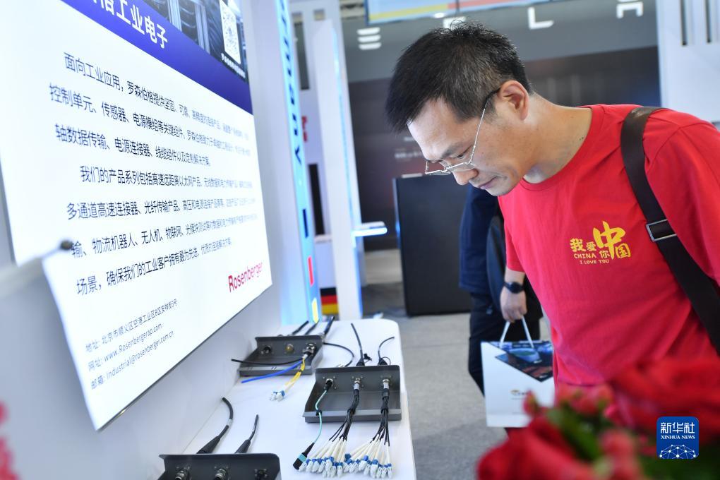 9月6日,參觀(guān)者在2023中國國際數字經(jīng)濟博覽會(huì )德國館參觀(guān)工業(yè)電子產(chǎn)品。