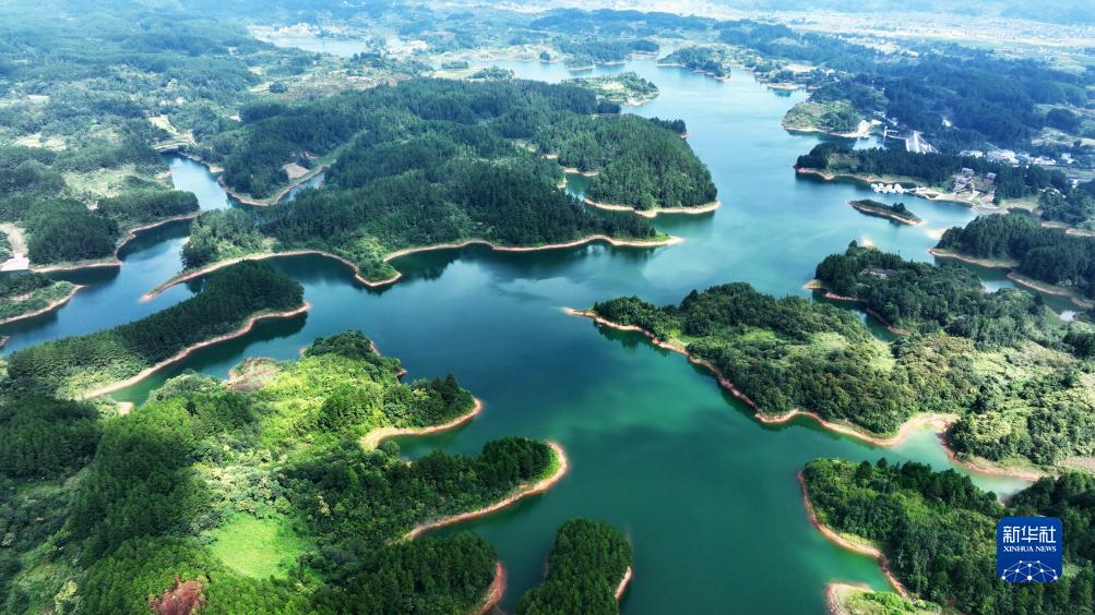 9月6日拍攝的貴州省黔東南苗族侗族自治州黃平縣舊州鎮?陽(yáng)湖畔美景(無(wú)人機照片)。