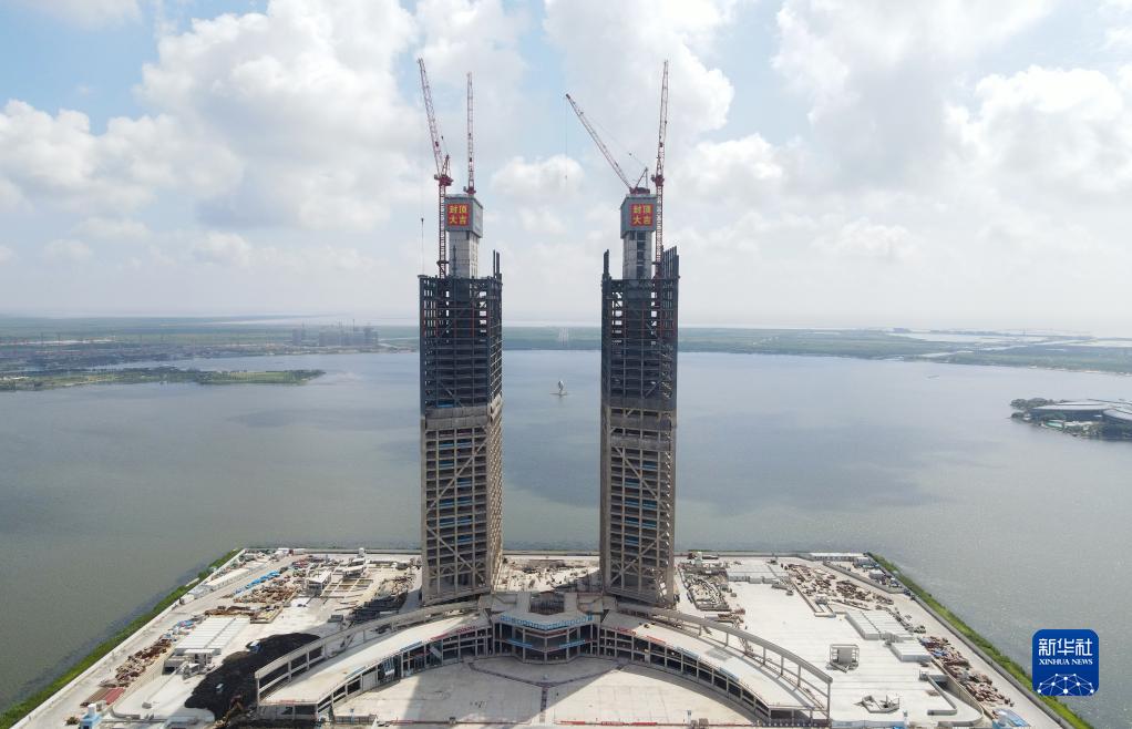 當日,位于中國(上海)自由貿易試驗區臨港新片區的中建二局臨港西島中銀金融中心南北雙塔核心筒完成封頂,高度195米的兩座主樓核心筒工程完成施工。臨港西島中銀金融中心項目總建筑面積28.25萬(wàn)平方米,建筑主體為南北兩座高200米的雙子塔樓,中心建成后將成為以金融總部辦公為主體的大型城市綜合體。