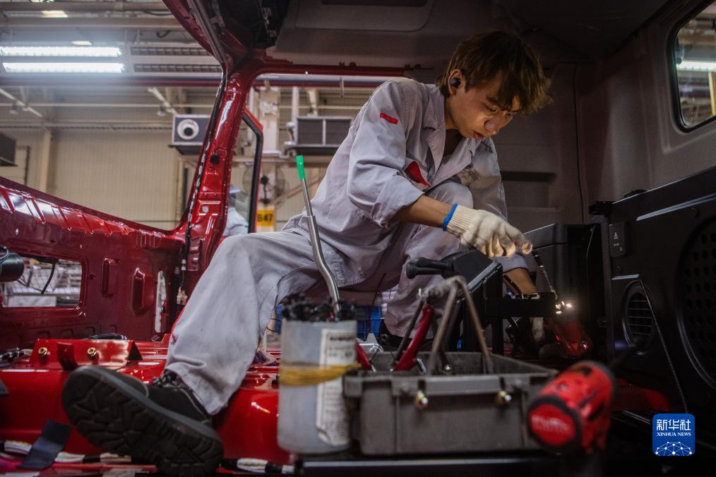 9月6日,在東風(fēng)商用車(chē)有限公司車(chē)輛工廠(chǎng),工人在進(jìn)行駕駛室分裝作業(yè)。