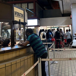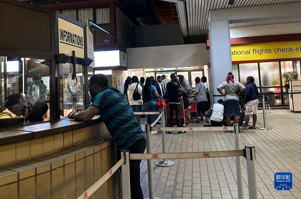 9月6日,在加蓬首都利伯維爾,人們在利伯維爾國際機場(chǎng)大廳內排隊(手機照片)。