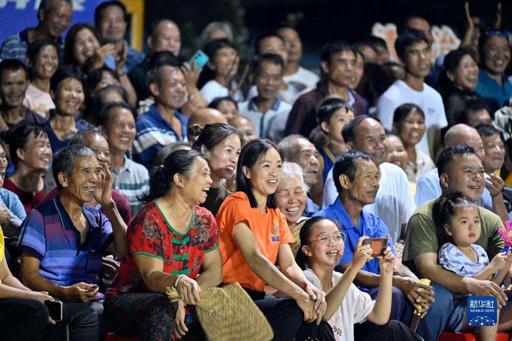 9月6日晚,人們在柳江區穿山鎮高平村平地屯觀(guān)看籃球賽。