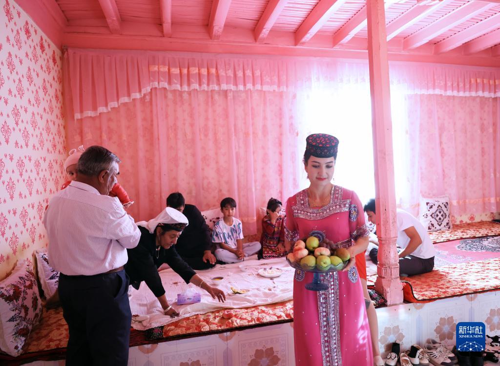 吃完晚飯,古麗巴努爾·庫爾恰克和家人一起收拾餐具(9月4日攝)。