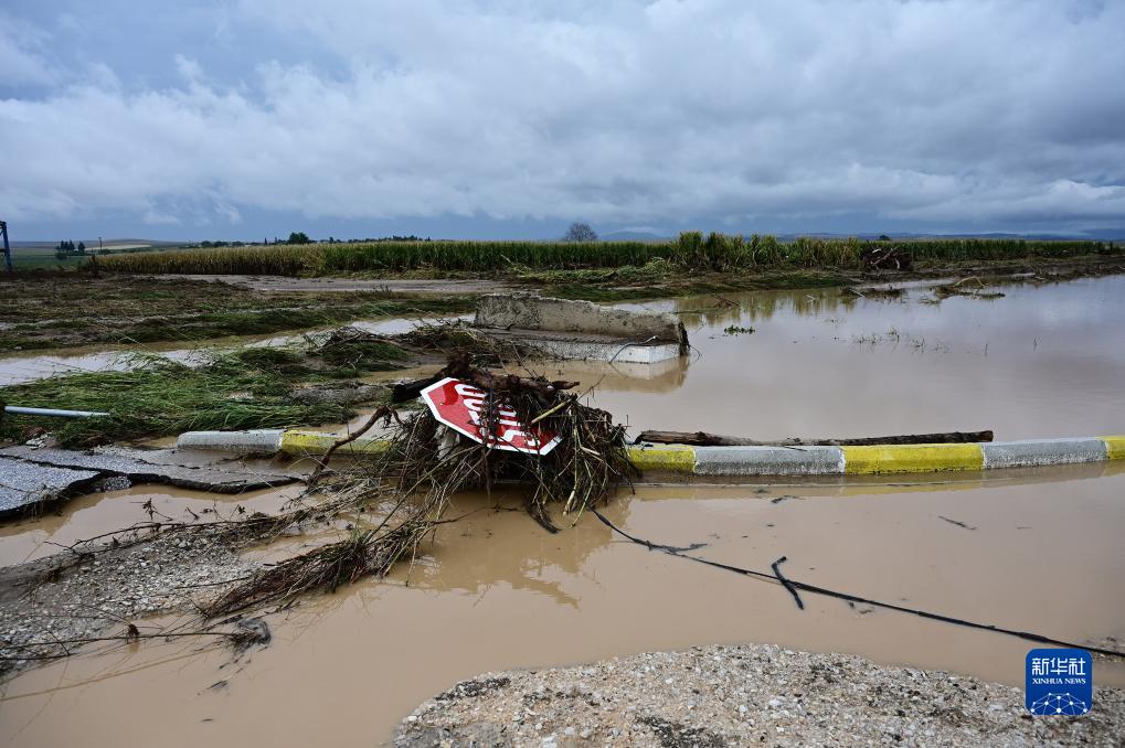 這是9月7日在希臘卡爾季察拍攝的洪水災區。