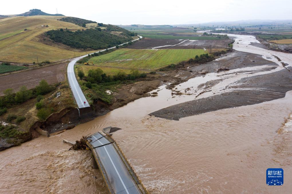 這是9月7日在希臘卡爾季察拍攝的洪水災區。