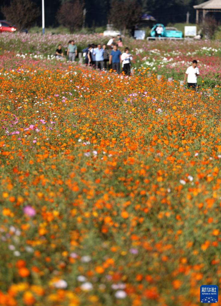 9月7日,游客在花海中漫步游覽。
