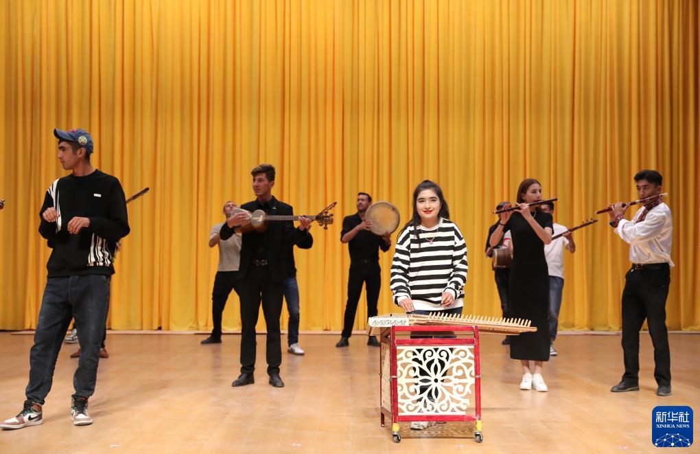 新疆塔縣文工團樂(lè )手在排練(9月4日攝)。新華社記者 程婷婷 攝