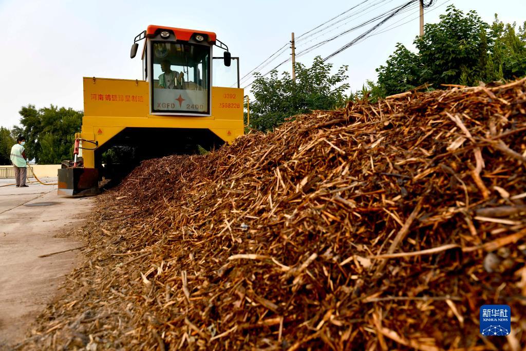 9月7日,在德州市碳循環(huán)創(chuàng )新示范基地,工作人員對園林綠化垃圾進(jìn)行資源化處理。