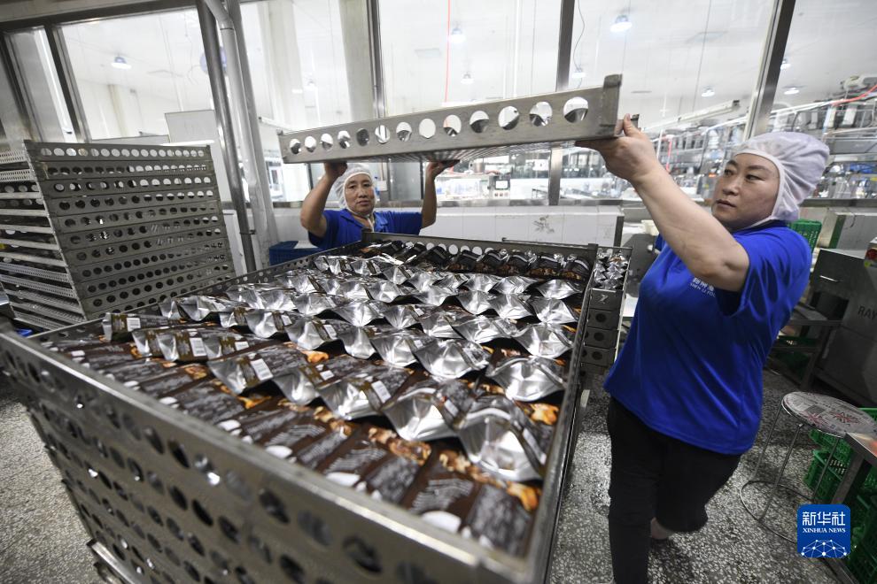 9月8日,在寬城縣一家板栗深加工企業(yè),工人將板栗產(chǎn)品裝盤(pán)準備進(jìn)行消毒。