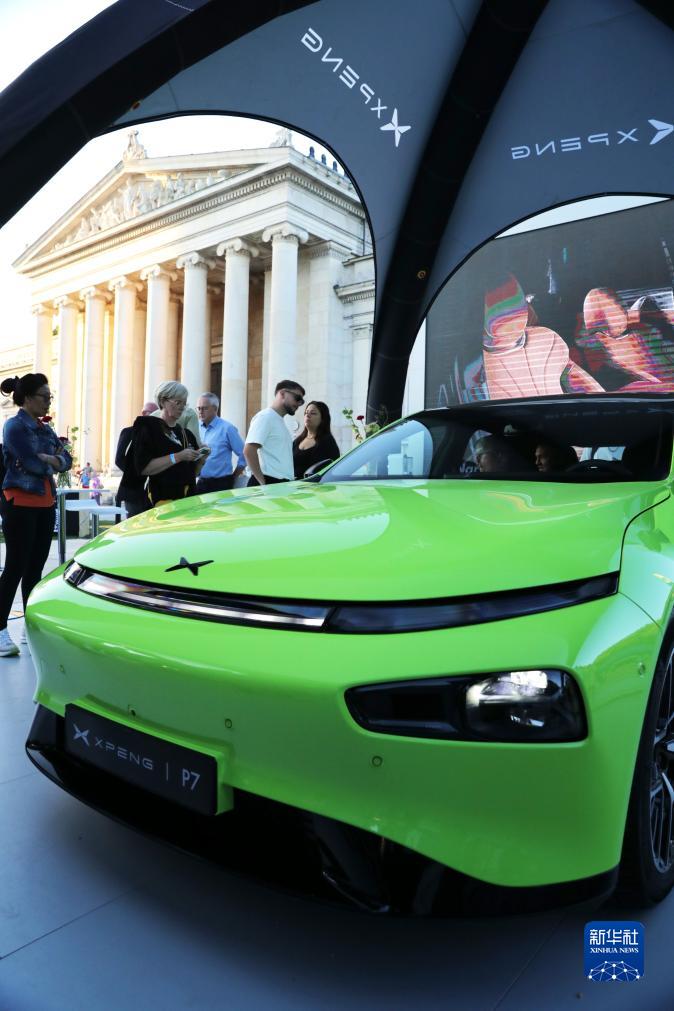 9月5日,人們在德國慕尼黑國際車(chē)展城市公共展示區的小鵬展區參觀(guān)。