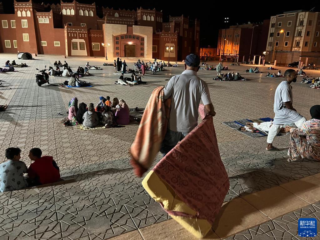 9月9日凌晨,在距離震中200多公里的摩洛哥瓦爾扎扎特市,居民在市區的空地避險(手機照片)。