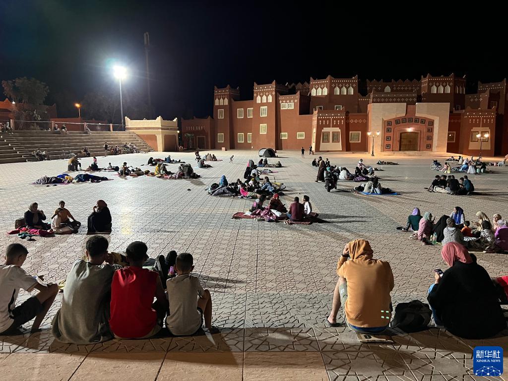 9月9日凌晨,在距離震中200多公里的摩洛哥瓦爾扎扎特市,居民在市區的空地避險(手機照片)。