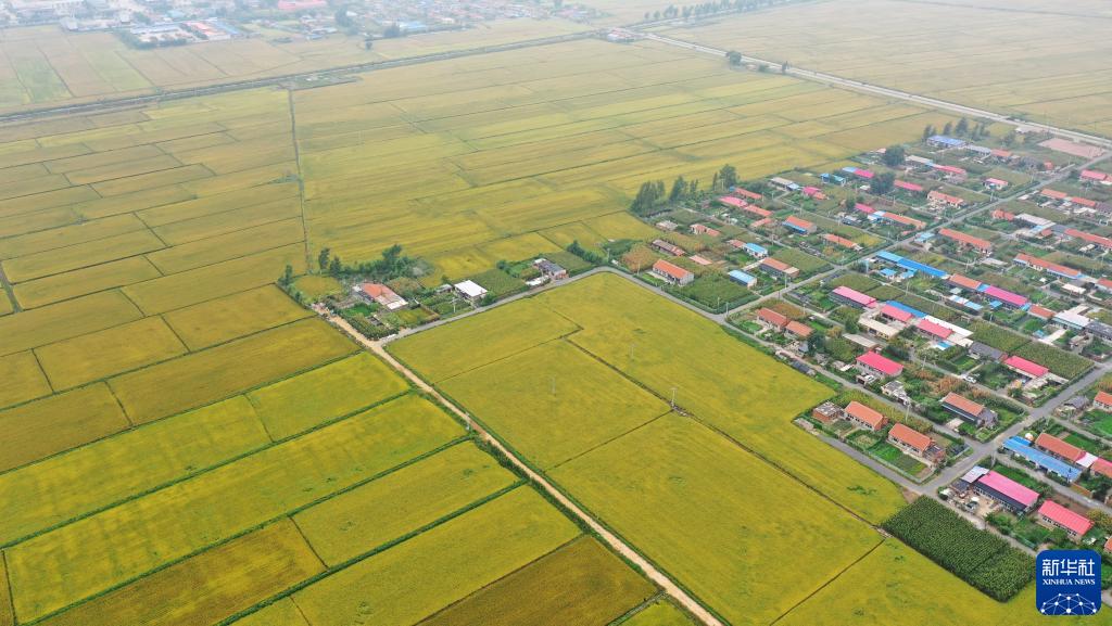9月8日在沈陽(yáng)市沈北新區興隆臺街道青年農場(chǎng)拍攝的即將成熟的稻田(無(wú)人機照片)。