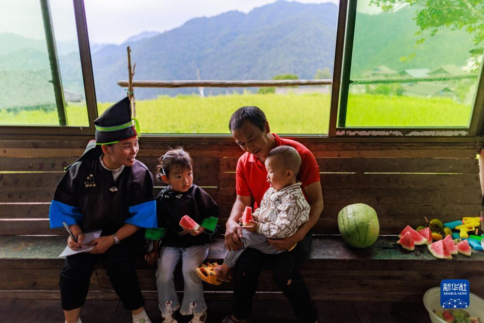 柳吉小學(xué)教師王章艷(左一)在學(xué)生龍運凡(左二)家中家訪(fǎng)(9月7日攝)。