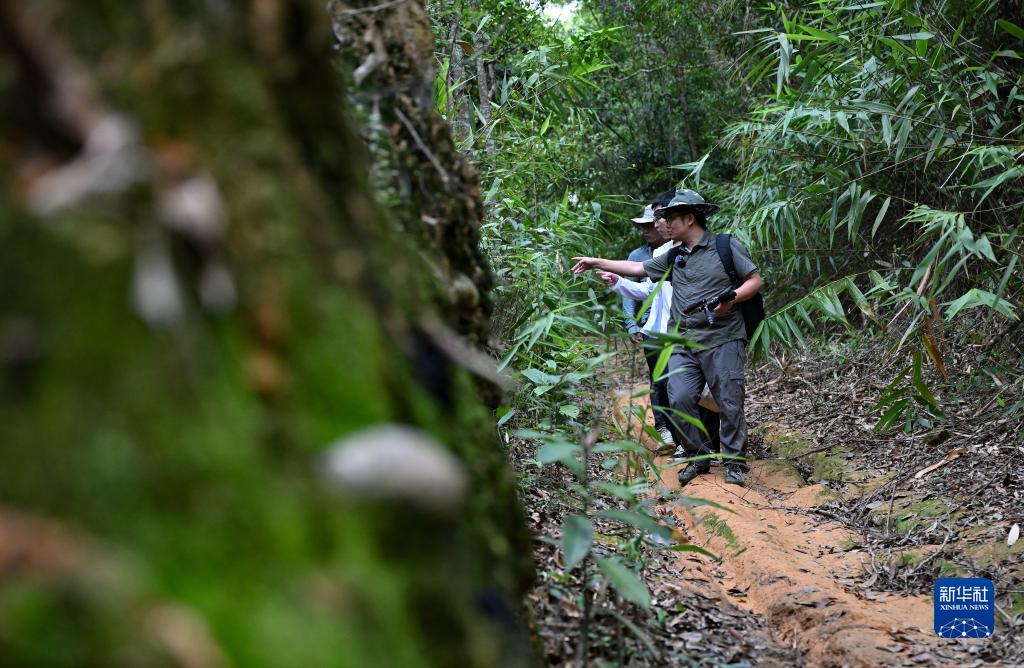 9月5日,曾念開(kāi)(前)和學(xué)生在海南鸚哥嶺熱帶雨林考察。