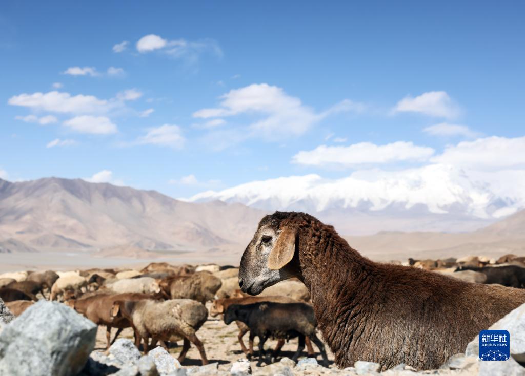 在“冰川之父”慕士塔格峰腳下,新疆塔什庫爾干塔吉克自治縣塔合曼鄉境內的一片天然草場(chǎng)吸引周邊鄉村的牧羊人在此放牧。進(jìn)入秋季以來(lái),草場(chǎng)漸漸泛黃,屹立于遠處的慕士塔格峰和公格爾九別峰在藍天白云的映襯下格外壯美,一幅寧靜悠遠的牧羊圖引人入勝。