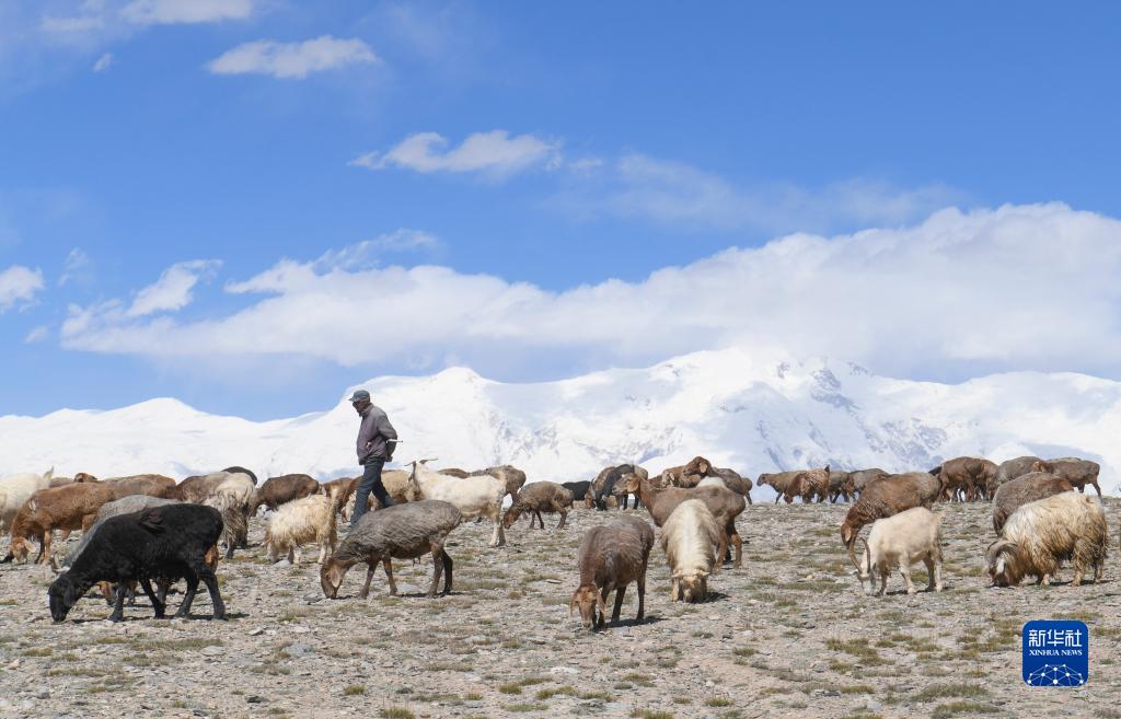 在“冰川之父”慕士塔格峰腳下,新疆塔什庫爾干塔吉克自治縣塔合曼鄉境內的一片天然草場(chǎng)吸引周邊鄉村的牧羊人在此放牧。進(jìn)入秋季以來(lái),草場(chǎng)漸漸泛黃,屹立于遠處的慕士塔格峰和公格爾九別峰在藍天白云的映襯下格外壯美,一幅寧靜悠遠的牧羊圖引人入勝。
