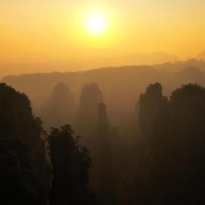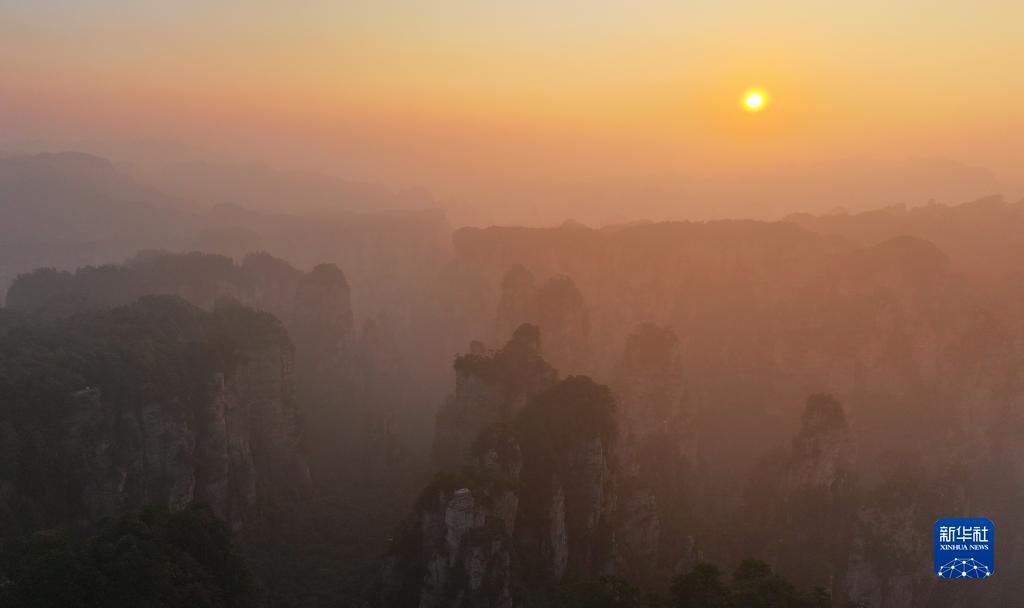 9月9日在湖南張家界國家森林公園黃石寨拍攝的日出景色。