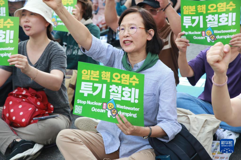 當日,韓國多個(gè)在野黨與市民團體在首爾市中心舉行集會(huì ),要求日本政府停止福島核污染水排海行為。