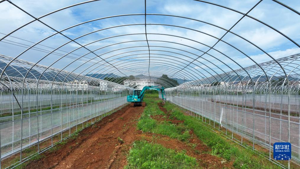 9月9日,工人在常寧市洋泉鎮巷坪村智慧育苗大棚施工現場(chǎng)施工。
