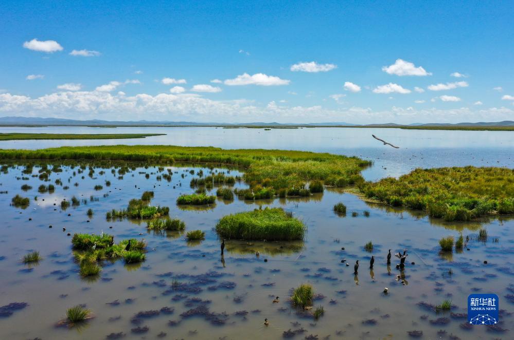 這是8月22日在四川省阿壩藏族羌族自治州若爾蓋縣拍攝的花湖(無(wú)人機照片)。
