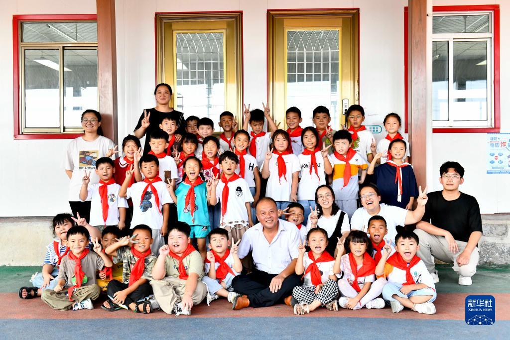 9月5日,在微山縣高樓鄉渭河小學(xué),師生合影留念。