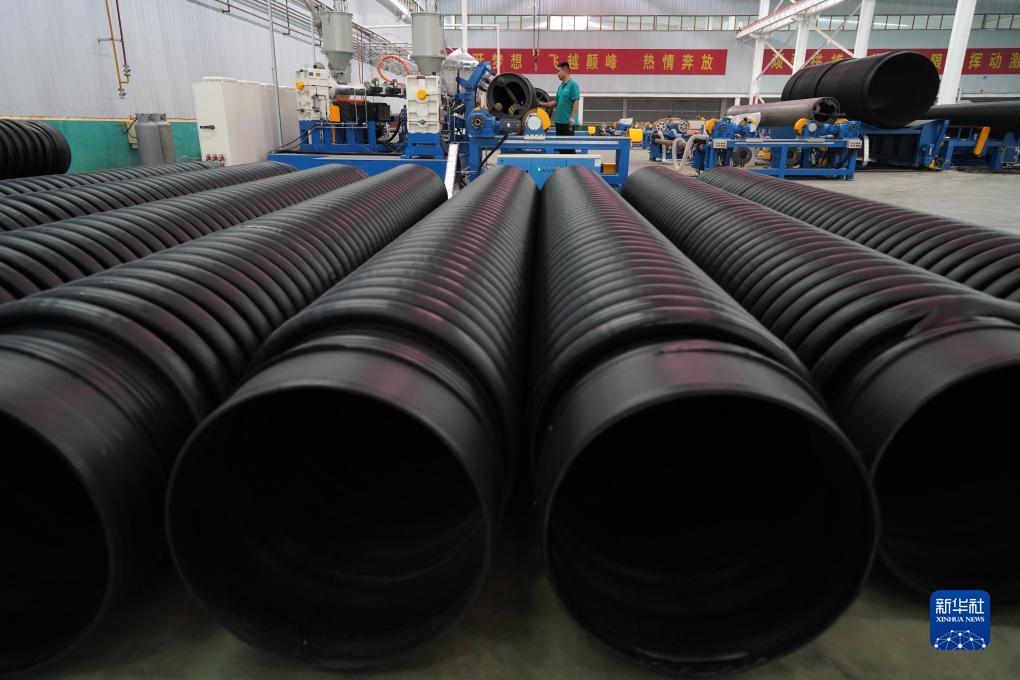 9月10日,河北省柏鄉縣一家管材生產(chǎn)科技型企業(yè)的工人在生產(chǎn)線(xiàn)上工作。