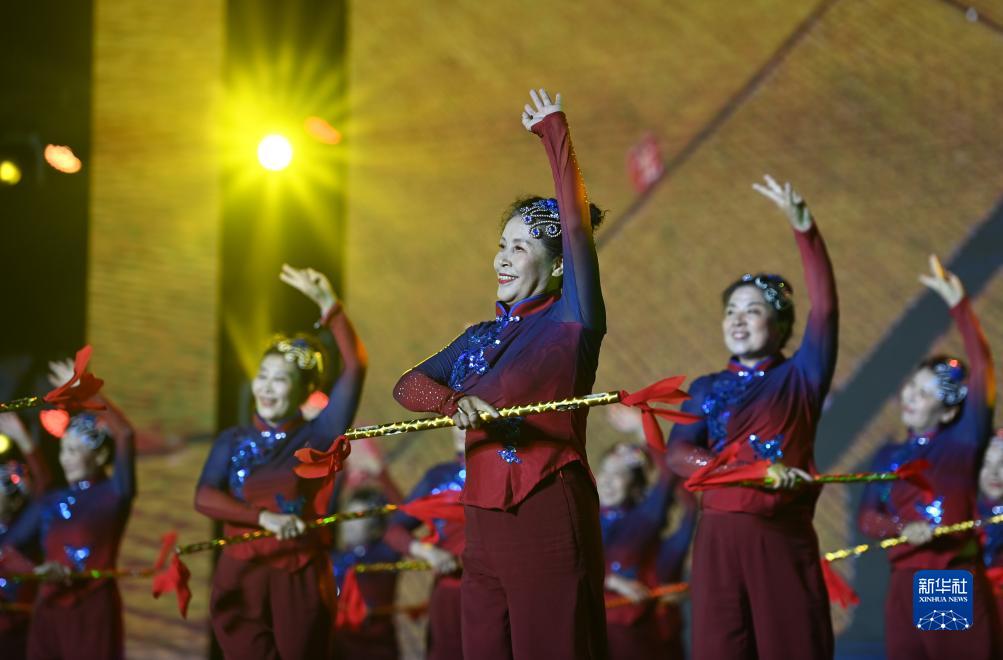 9月10日,參加展演活動(dòng)的廣場(chǎng)舞團隊在表演。