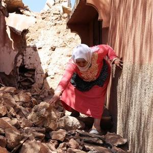 9月11日,在摩洛哥馬拉喀什南部的穆萊村,一名婦女走過(guò)地震廢墟。