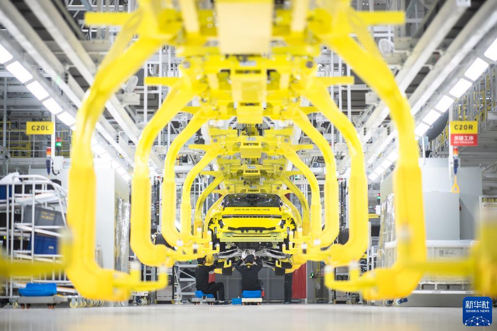在位于湖北武漢經(jīng)濟技術(shù)開(kāi)發(fā)區的路特斯全球智能工廠(chǎng),工人在流水線(xiàn)上生產(chǎn)作業(yè)(2023年1月11日攝)。