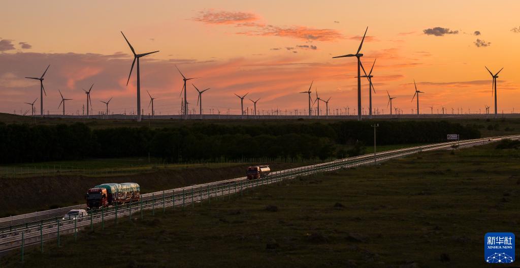 在河北省張家口市張北縣境內拍攝的風(fēng)力發(fā)電機(2023年8月18日攝)。