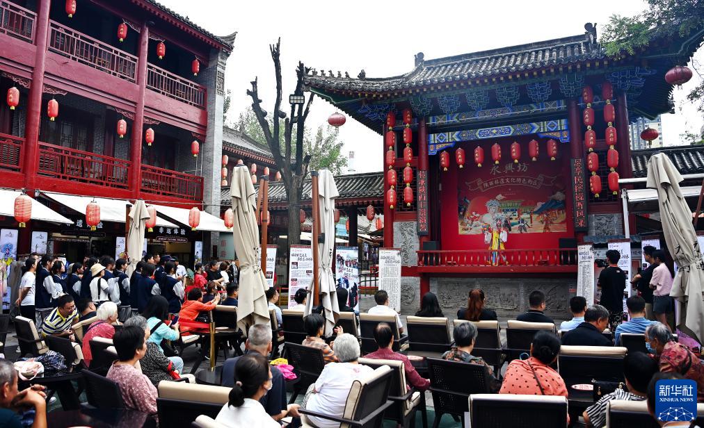 9月12日,西安市新城區“遇見(jiàn)城墻·非遺韻”非遺集市上,觀(guān)眾在欣賞秦腔表演。