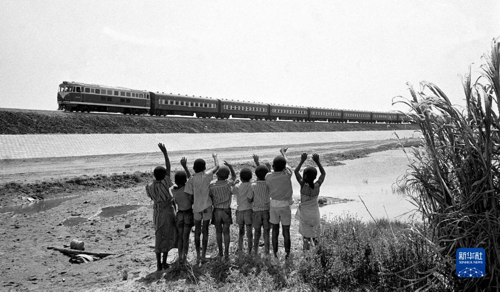 贊比亞魯西瓦西湖畔的少年兒童歡迎坦贊鐵路的列車(chē)通到他們的家鄉(1976年攝)。上世紀六七十年代,數萬(wàn)名中國專(zhuān)家、鐵路工人奔赴非洲,同坦桑尼亞和贊比亞人民攜手并肩,修筑了貫通東部和中南部非洲的坦贊鐵路。坦贊鐵路的建成,極大鼓舞了非洲人民,為各國民族獨立與解放事業(yè)發(fā)揮了重要作用,被譽(yù)為非洲的“友誼之路”和“自由之路”。坦贊鐵路精神始終是連接中非友好、促進(jìn)中非合作的重要紐帶。