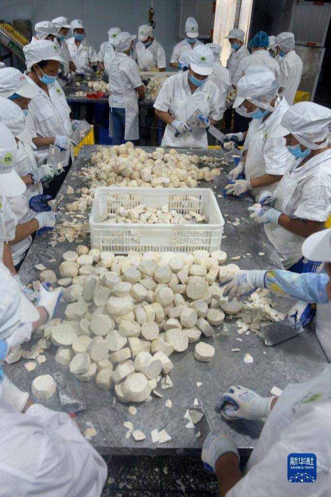 9月12日,在賀州市八步區蓮塘鎮一家香芋加工企業(yè),工人在加工香芋。