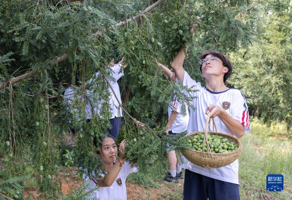 9月12日,浙江省諸暨市學(xué)勉中學(xué)的學(xué)生在香榧園采摘香榧。