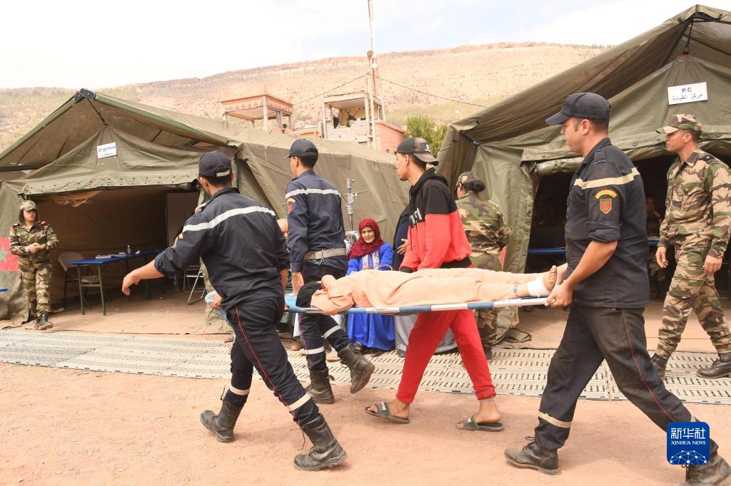 這是9月12日拍攝的位于摩洛哥豪茲省的艾斯尼村的臨時(shí)軍事醫院。