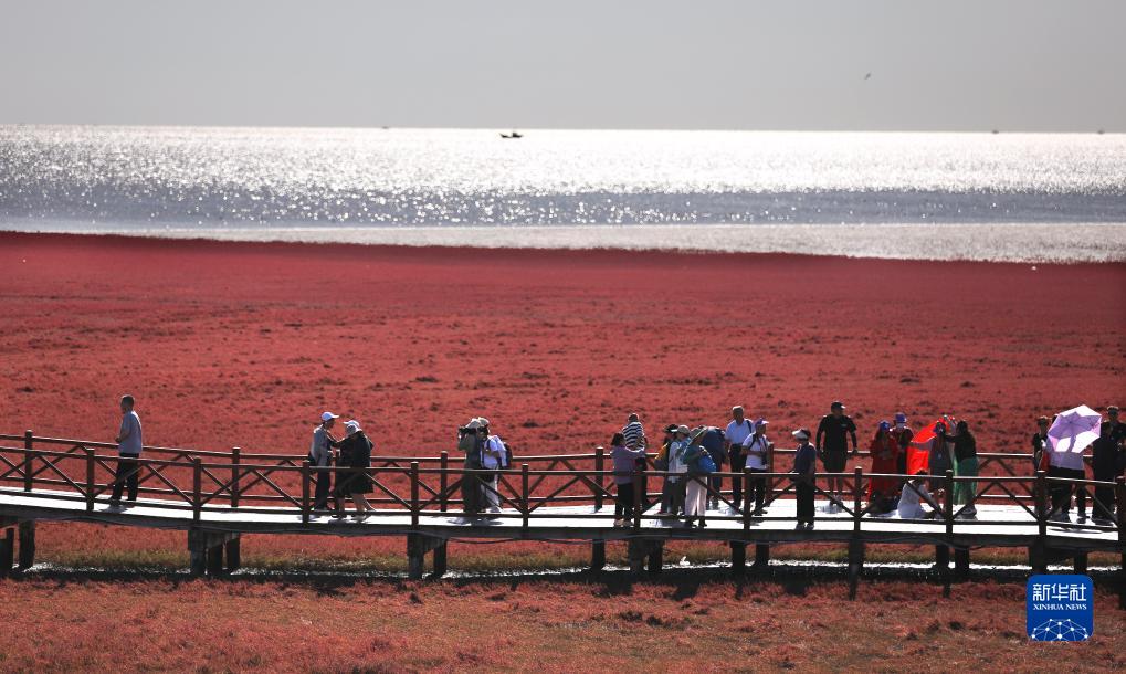 近日,遼寧省盤(pán)錦紅海灘國家風(fēng)景廊道內的堿蓬草迎來(lái)最佳觀(guān)賞期,吸引了眾多游客前來(lái)觀(guān)賞游玩。
