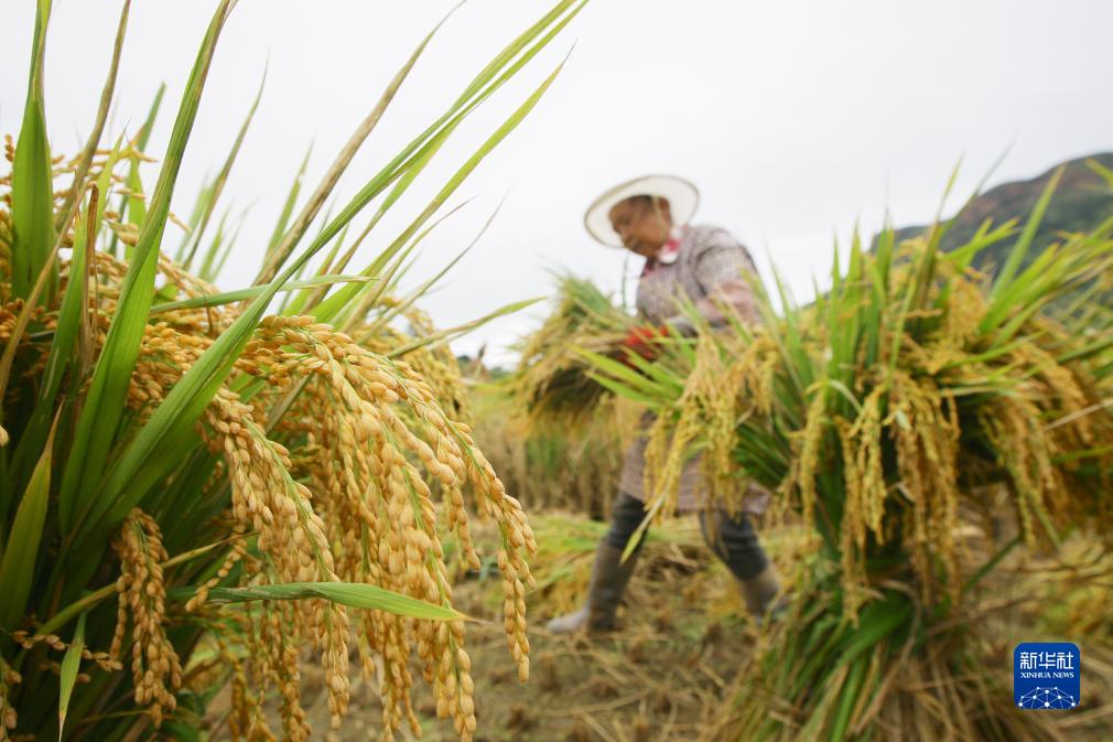 9月12日,云南省曲靖市沾益區德澤鄉,農民在田間收割水稻。