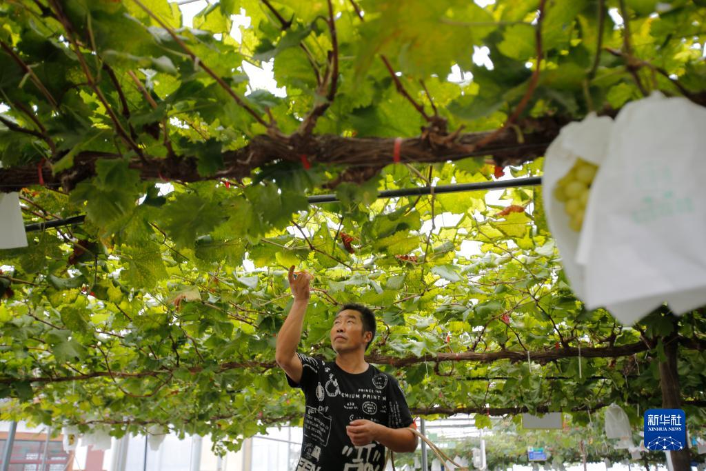 9月12日,句容市丁莊村的種植戶(hù)在采摘葡萄。