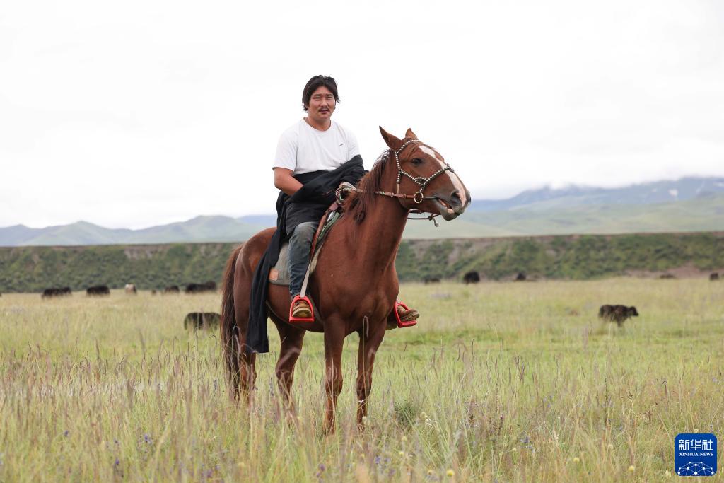 8月17日,在青海省黃南藏族自治州河南蒙古族自治縣多松鄉多松村,扎西曲培在放牧。新華社記者 邢廣利 攝