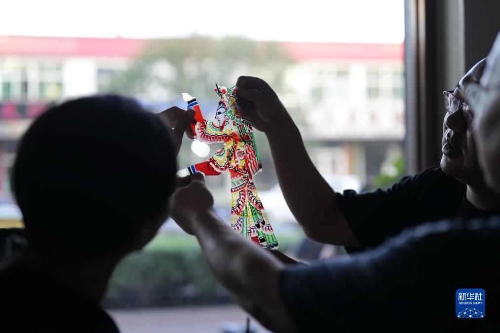 9月13日,市民在河北省樂(lè )亭縣一處皮影工坊內了解皮影人制作技術(shù)。