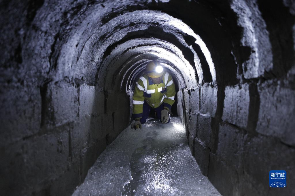 9月13日,在大興安嶺地區白卡爾隧道,中國鐵路哈爾濱局集團有限公司加格達奇工務(wù)段的鐵路工人在地下8米的深井檢查排水系統的暢通情況。