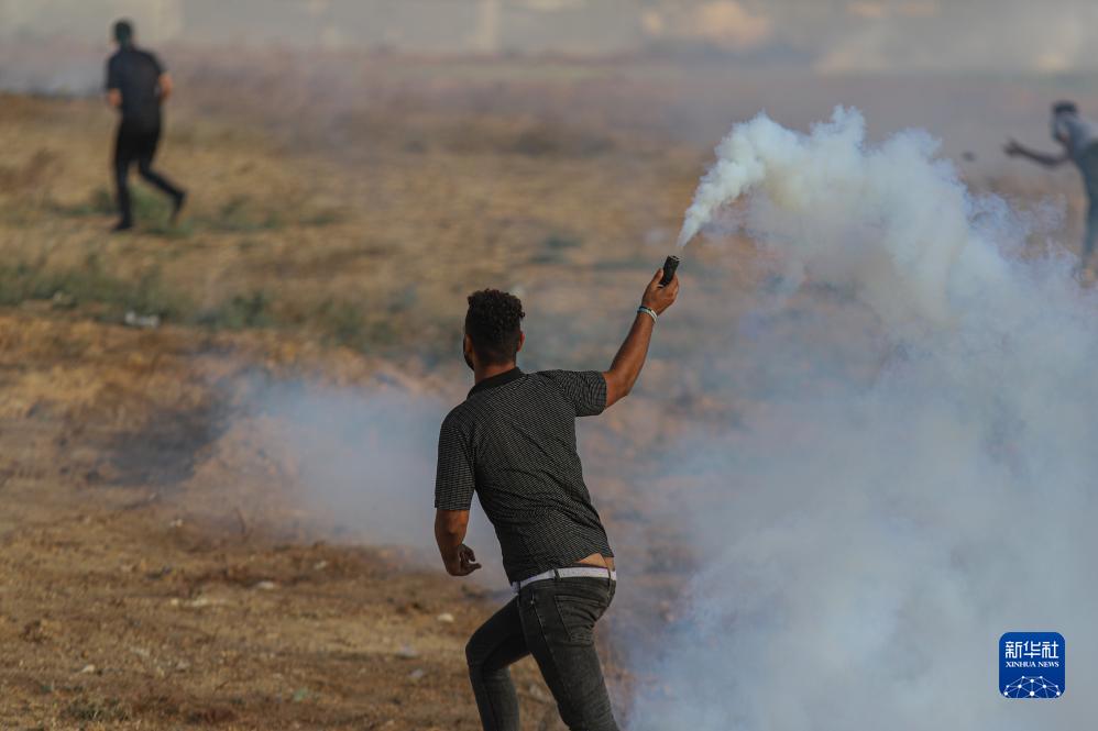 9月13日,在位于加沙城東部與以色列交界地區的圍欄附近,巴勒斯坦人參與示威活動(dòng)。