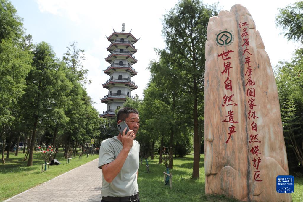 徐安宏在和同事電話(huà)溝通(2023年8月21日攝)。1986年,大豐麋鹿自然保護區成立,并從英國引進(jìn)第一批麋鹿,隔年,從事獸醫工作的徐安宏調到麋鹿保護區工作,只知道“四不像”的他第一次接觸到麋鹿,從此與麋鹿結緣。30多年來(lái),他一人多崗,忙碌在飼養、巡護、救助、普法宣傳等工作一線(xiàn),與保護區共發(fā)展共成長(cháng)。1998年11月,第一批麋鹿開(kāi)始野生放養,目前野生種群麋鹿已達到3356頭。新華社記者 楊磊 攝