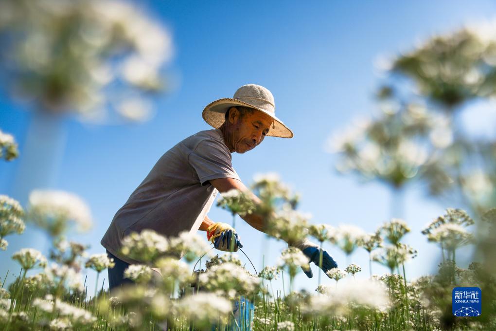 眼下正值韭花成熟上市的季節,山東省淄博市高青縣的農民們忙著(zhù)采收韭花,供應市場(chǎng)。