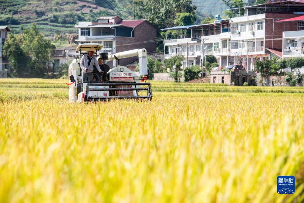 金秋時(shí)節,重慶市巫山縣廟宇鎮稻谷陸續進(jìn)入成熟收割期,稻農們搶抓晴好天氣,收割水稻。